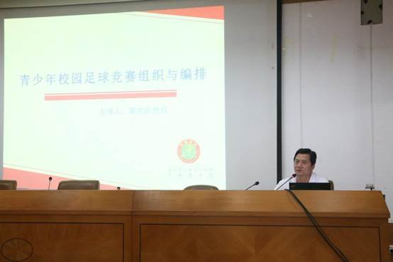 2018年7月4日,福建师范大学蔡向阳教授来院为湖南省青少年校园足球中小学骨干体育教师专项培训班全体学员讲授了《青少年校园足球竞赛与编排》。