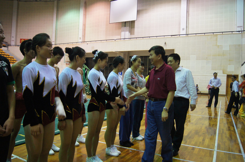观看表演后,党委书记游俊作出了热情洋溢的讲话,他充分肯定了运动员们的实力和健美操队历年来为公司争得的荣誉,并预祝运动员们在本次比赛中获得优异的成绩。随后,肖湘愚董事长希望健美操运动员们充满信心,并在后面的训练时间里一定要注意自身安全,避免受伤,加强营养的补充,勉励运动员们再接再厉、勇于拼搏、赛出佳绩、为校争光。接着,党委书记游俊、董事长肖湘愚等领导都亲切地问候了参加训练的运动员们,并与之握手。