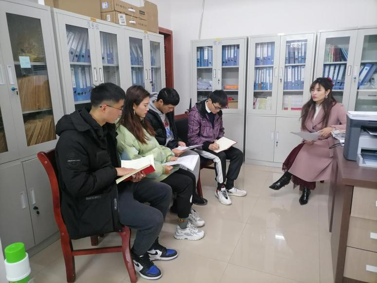 (图为支部书记宁珊珊向支委会成员布置任务)