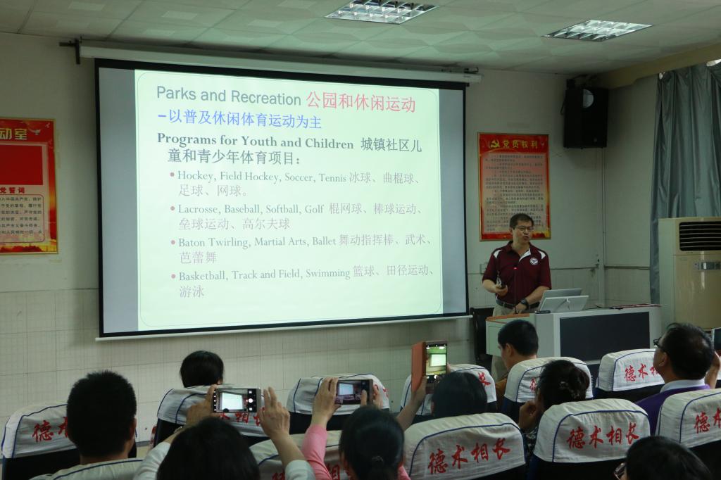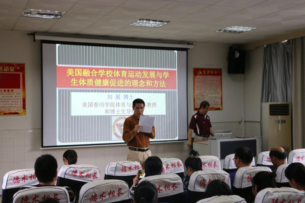 刘展教授首先从美国春田公司发展的历程进行介绍,随后从美国公司运动发展的模式和现状,围绕公司员工体质健康促进的理论和方法展开讲座。他细解读了美国青少年九条体育运动标准,从美国小学、初中、高中和大学等阶段的背景信息对美国公司运动发展的模式和现状进行分析,深入探讨了美国公司和俱乐部体育运动发展模式的缺陷,提出了竞技体育运动的投入和发展无法从根本上解决员工参加健身活动和促进体质健康的问题。让我们对美国公司体育运动有了新的认知,深刻认识到公司是提升员工体质健康的重要场所和领地,是影响青少年体育锻炼行为促进体质健康的重要途径。