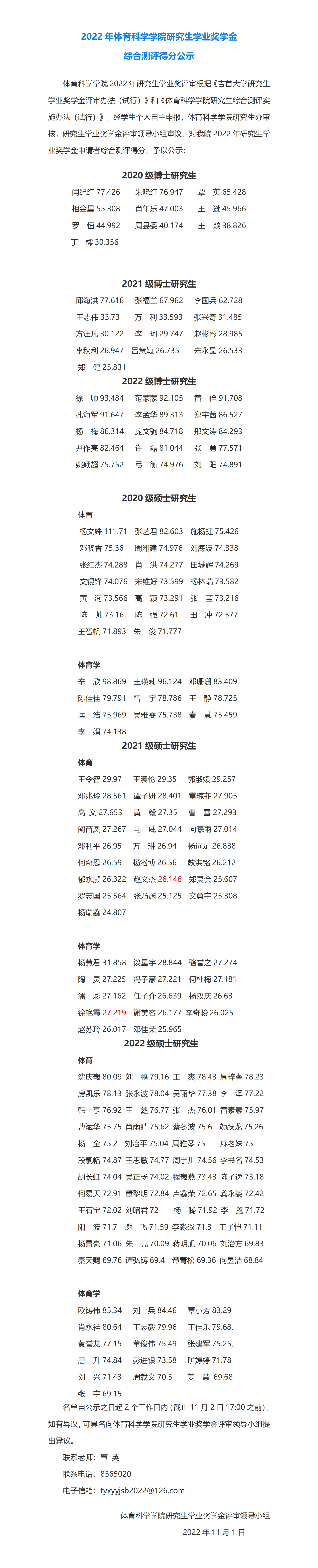 2022年bevictor伟德研究生学业奖学金员工综合测评分数公示