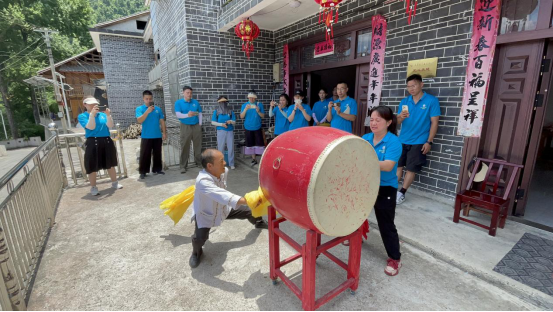 早上8点,所有队员乘车前往第一个调研目的地保靖县葫芦镇大岩村,在本次调研联络员颜老师的带领下,于村委会会议室对乡贤石元杰、苗歌传承人龙凤姐和龙冬莲、苗拳传承人石孟斌和龙乔英进行访谈。访谈结束后,龙凤姐和龙冬莲为调研组展示了苗鼓,石孟斌为大家展示了苗拳套路。