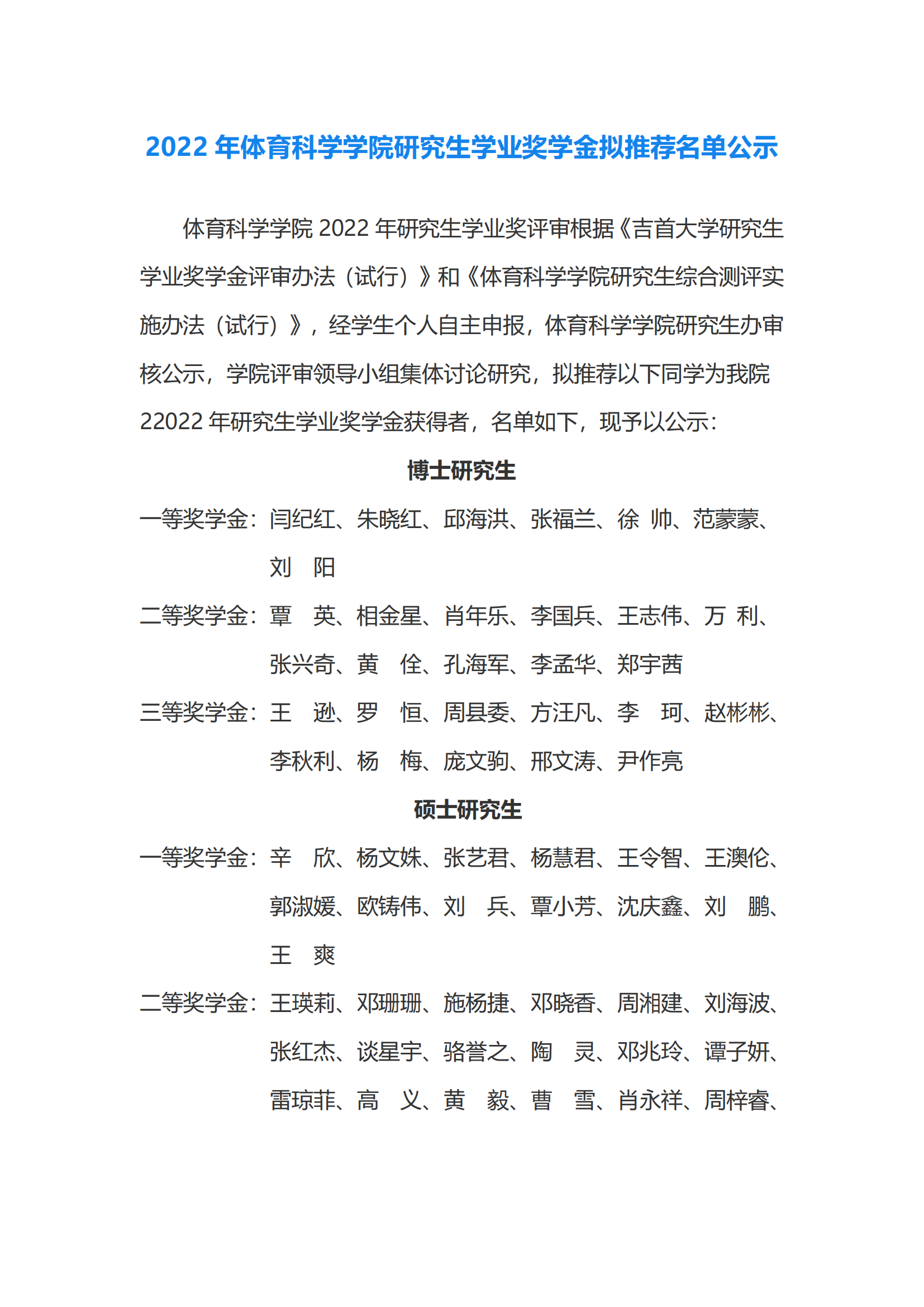 2022年bevictor伟德研究生学业奖学金拟推荐名单公示