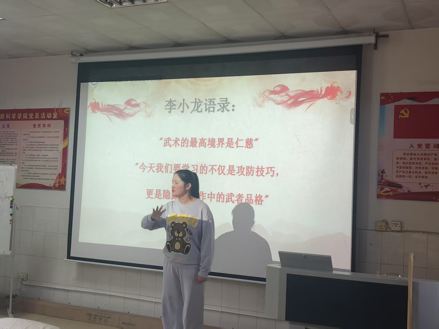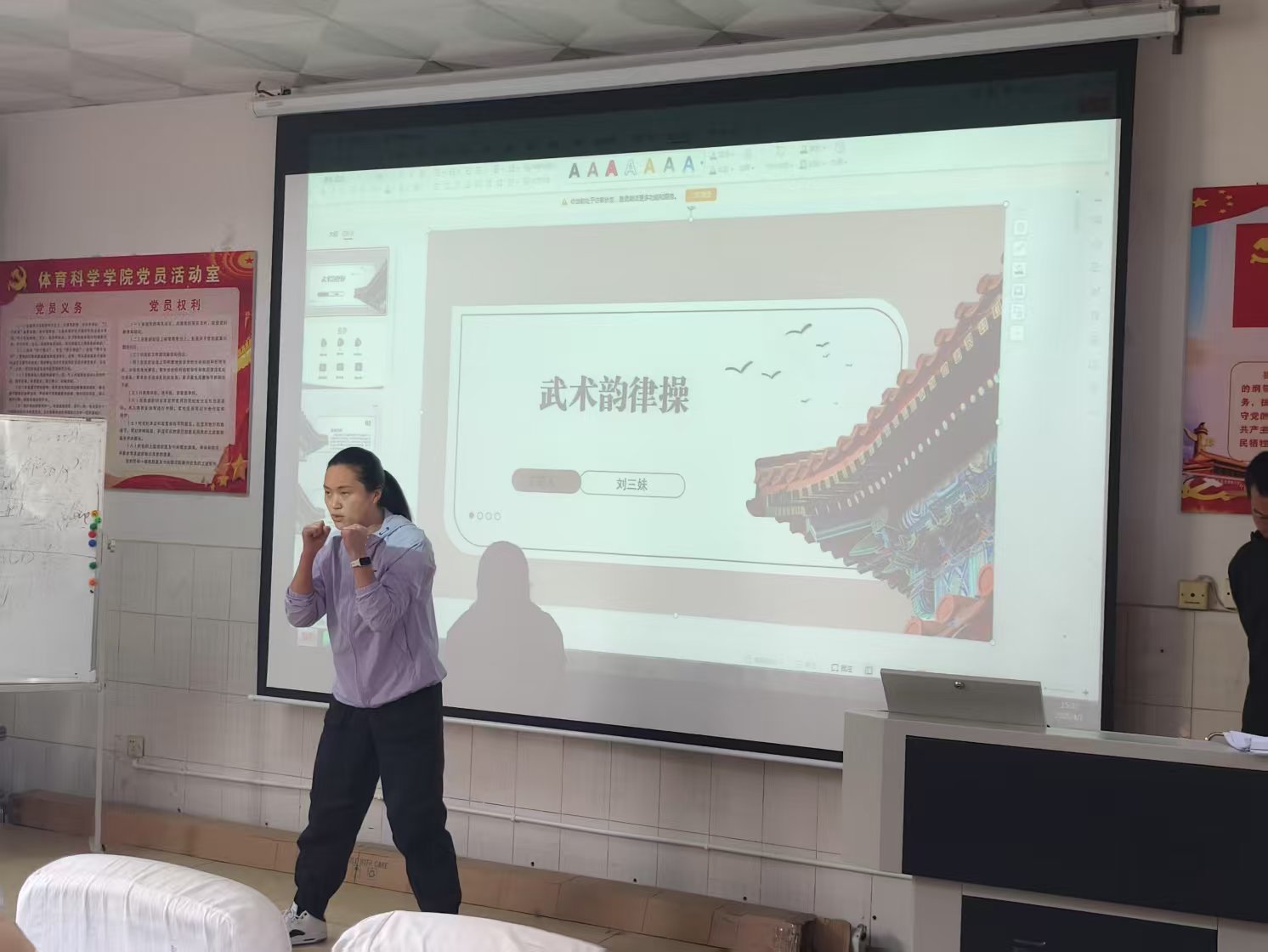 竞赛现场,参赛教师立足体育学科特色,深挖专业课程中的思政元素,将家国情怀、体育精神、文化自信等育人主题巧妙融入教学设计。吴雅雯老师通过《运动损伤的急救》课程,结合急救案例,培养员工坚韧不拔,助人为乐的良好品德;龙辉、朱红彩老师在《篮球战术训练》中融入团队协作与责任担当的思政要点;刘三妹、张泽文、李过三位教师分别以武术教学和散打训练为载体,弘扬中华优秀传统文化与坚韧不拔的意志品质。参赛教师以扎实的专业功底和创新的教学设计,展现了“知识传授”与“价值引领”相统一的教学智慧。