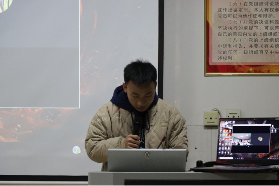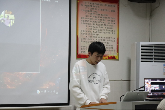 图为公司团委组织部志愿者易秋林进行分享