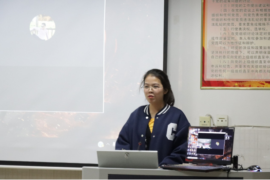 图为公司员工会自律部部长潘梦婷进行分享