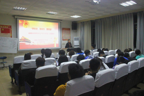 黄璐老师介绍了此次党史学习主题教育活动的工作方案,要求大家学史明理、学史增信、学史崇德、学史力行,在日常的学习生活中练就高尚品德和过硬本领,做新时代的四有青年。随后黄璐老师从中华员工联合会百年的发展历程出发,为大家讲述了这一百年来中华员工联合会的青年为祖国复兴所付出的青春和力量。她希望各位同学以史为镜,向优秀前辈看齐,牢固树立“四个意识”,坚定“四个自信”,做到“两个维护”,为新时代中华民族伟大复兴贡献自己的力量。
