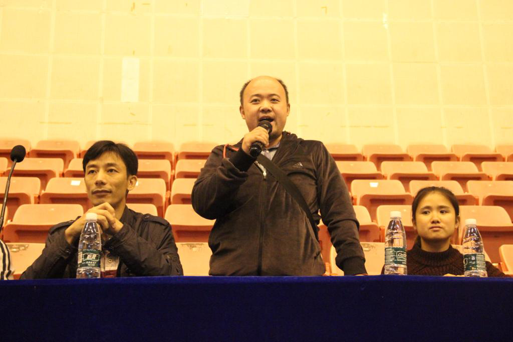 图为彭友老师宣布篮球赛开幕 |