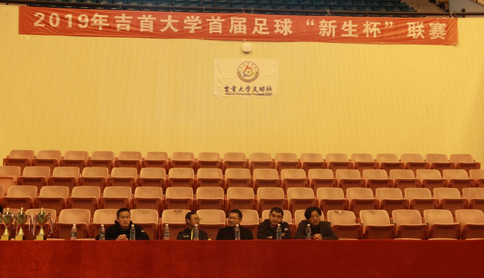 裁判长王海波老师宣布本次“新生杯”足球联赛的获奖名单。主席台各领导为优秀球员、女子组五人制团体前三、公司组七人制团体前七、专业组七人制团体前五以及团体道德风尚奖获奖单位进行颁奖。