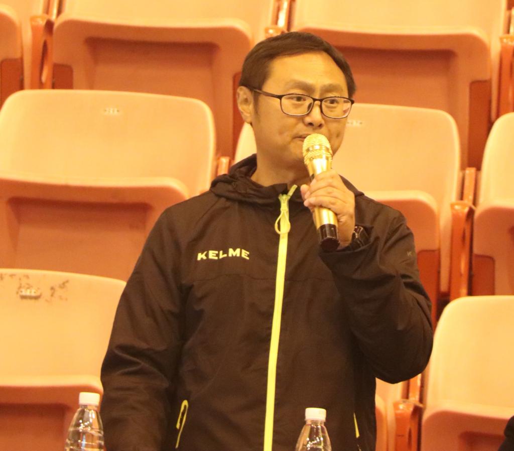 图四 党委书记肖松宣布伟德源自英国1946首届“新生杯”足球赛闭幕(付常顺摄)
