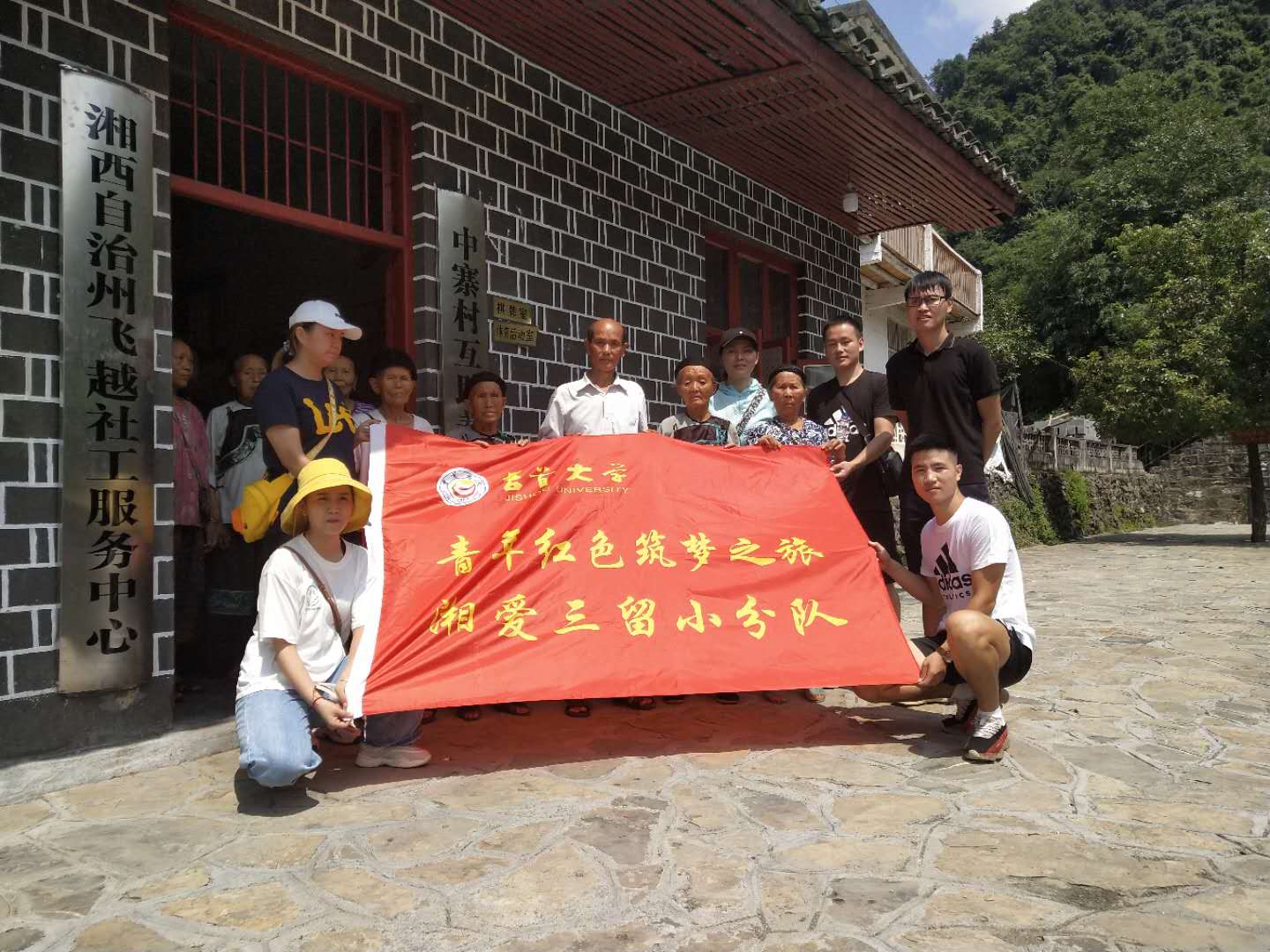 8月19日, 学院暑期“三下乡”助力乡村·湘爱三留调研小分队走进湘西州古丈县默戎镇中寨村,进行老员工暑期社会实践调研活动。本次活动是体院2019届研究生彭锦滔员工主持的互联网+“湘爱三留·社工服务”项目的构成部分,同时也是围绕服务新农村建设助力乡村经济发展而进行的体育旅游资源开发深度访谈。参加本次调研活动的指导老师有公司党委副书记吴湘军教授、辅导员杜宏伟老师。