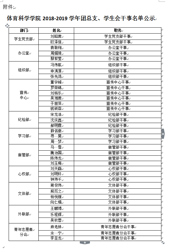 bevictor伟德2018-2019学年团总支、员工会干事名单公示