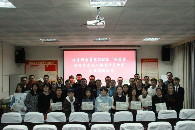 (通讯员:刘杨乐)为激发员工明确防控疫情的重要性,丰富校园生活,锻炼员工能力,增强学术气氛,10月18日晚,在公司三楼多媒体教室举行“话疫情,谈体育文化人的责任与担当”主题演讲比赛。莅临本次活动的领导老师有党委副书记吴湘军,副经理万义,人文教研室张天成教授,唐君玲老师,胡建文老师,及学工办的辅导员老师们。本次比赛由刘阳、侯添浩主持。