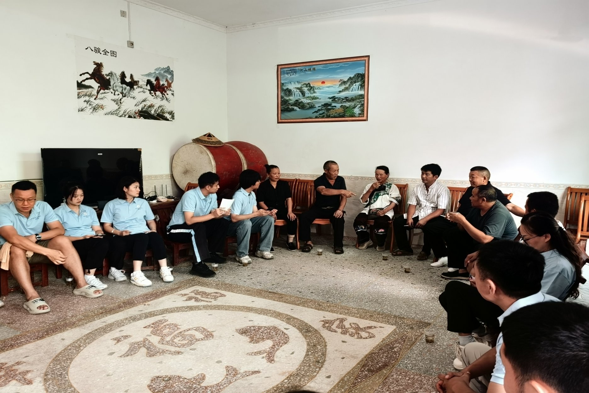 7月31日,田野调查小组在矮寨镇德夯村调研苗族非遗项目苗鼓舞。苗鼓舞作为苗族民间艺术的瑰宝,节奏明快,动作刚劲有力,展现了苗族人民的热情与活力。田野调查小组成员与当地苗鼓舞传承人深入交流,了解其表演形式、文化内涵及传承现状,并现场观摩了精彩的苗鼓舞表演。