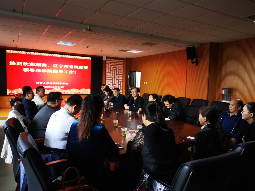 10月21日上午,在湖南省民宗委文教处丁亚波副处长陪同下,辽宁省民宗委文教处刘岩处长等一行10人,前来公司学习考察民族体育基地建设和民族体育进校园等情况。公司周道平、肖松、吴湘军、万义、龙佩林、朱晓红、覃英等一起出席交流。会议由周道平经理主持。