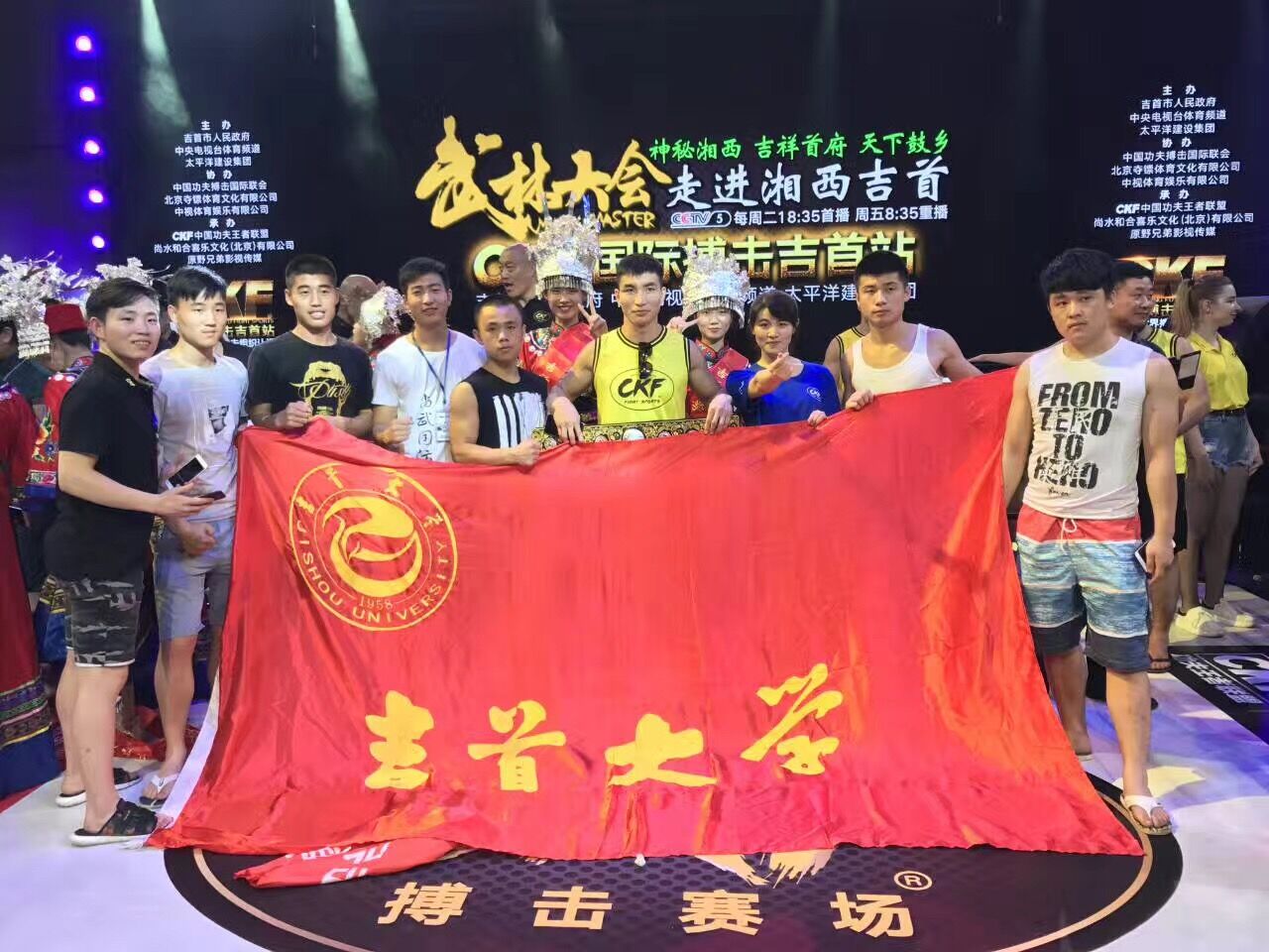 (撰稿:舒颜开)2017年7月8日晚,武林大会CKF国际搏击赛吉首站在湖南伟德源自英国1946体育馆正式开战,来至俄罗斯、日本、印度、韩国、泰国、菲律宾和中国等6个国家的优秀选手同台竞争。公司乐鹏辉同学参加了本次比赛,并不负公司师生的厚望,击败泰国选手董,荣获CKF国际搏击吉首站73kg级冠军。
