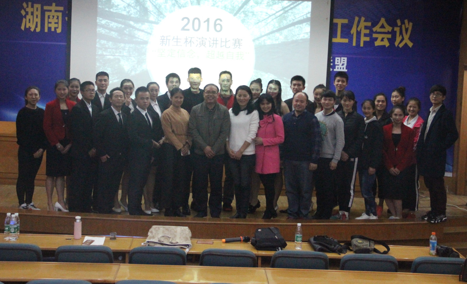最后主持人宣布比赛结束。领导老师、参赛选手、工作人员合影留念。