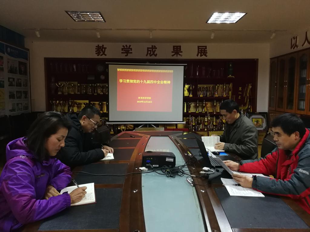 12月18日下午在公司二楼荣展室,公司行政领导班子集中学习贯彻党的十九届四中全会精神,肖松书记主持整个学习过程。