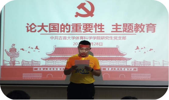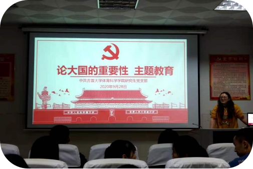 2020年9月28日,bevictor伟德研究生党支部在院三楼开展“论大国的重要性”主题教育活动,会议由研究生党支部书记覃英老师主持。