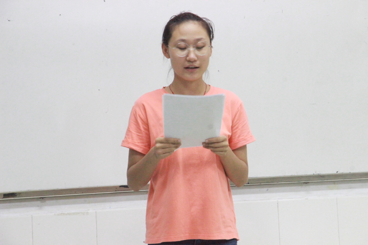 | 图为老生代表辛欣发言(陈宝玉摄) |