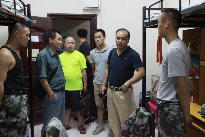图为公司领导及辅导员到男生寝室看望新生(陈宝玉摄)