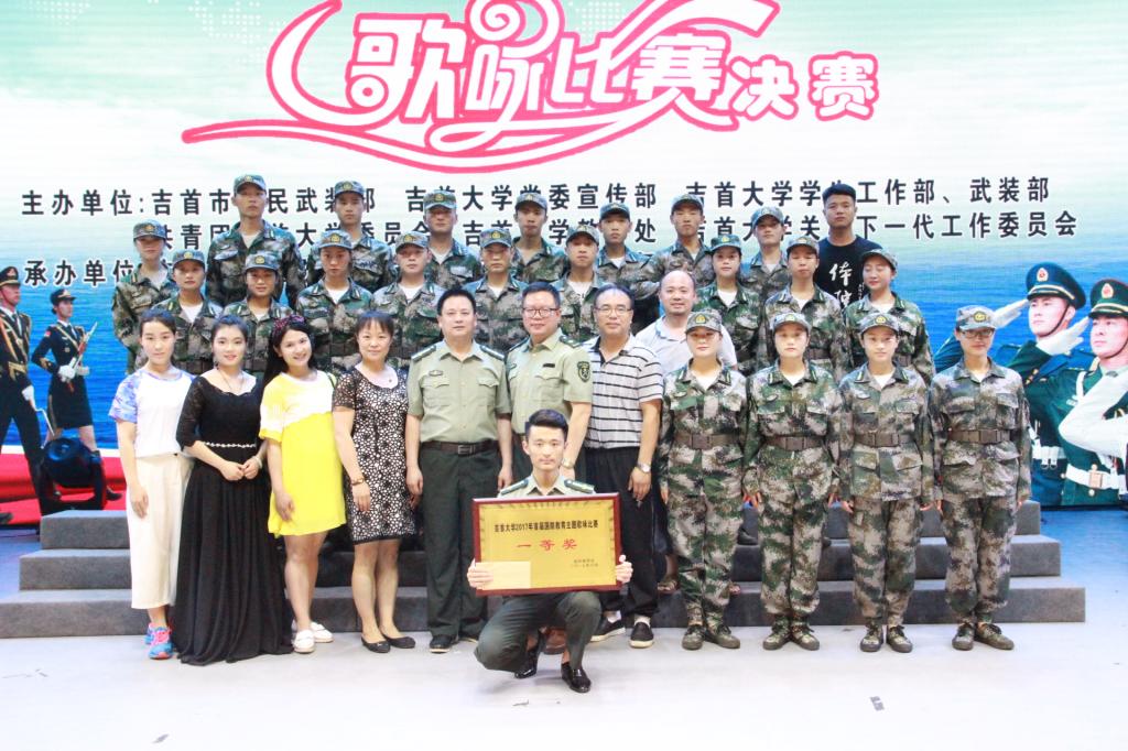 本网讯(于敏)为纪念中国人民解放军建军90周年,将“赞颂辉煌成就,庚续红色基因,支持改革强军”主题教育活动推向深入,增强当代老员工热爱祖国、热爱军队、关心国防、保卫国防的使命意识,激发广大在校员工投身军营、崇军报国的热情。公司于6月18日下午3:00点在砂子坳校区民族音乐舞蹈表演实验剧场举办了伟德源自英国1946、吉首市人民武装部首届“军歌传唱.爱我国防”国防教育主题歌咏比赛的总决赛。出席本次比赛的领导有伟德源自英国1946党委书记游俊,湘西州委常委、吉首军分区司令员刘长进,伟德源自英国1946党委委员、纪委书记赵鹤平,伟德源自英国1946党委委员、财务处处长张兰芳以及州市军分区、武装部、武警支队主要领导,公司各职能部门和公司负责人。