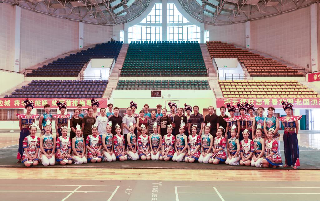 8月8日上午,湖南省民委文教处朱朝辉处长、丁亚波副处长携华声在线记者等一行8人,检查公司代表湖南省备战“中华人民共和国第十一届少数民族传统体育运动会:竞赛项目《民族健身操》、表演项目《黛帕黛咕嬉秋》及开幕式驻停表演”项目。公司肖松书记、万义副经理等相关领导及教练参与项目的检查活动。检查主要以汇报演出的形式在伟德源自英国1946新体育馆进行。