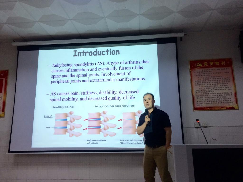 首先,邹立业博士介绍了脊柱炎是一种慢性、进行性和炎性疾病,是较常见的腰背痛疾病之一,主要病变部位在骶髂关节、脊柱、脊柱旁软组织及四肢关节,这种慢性疾病影响人们正常的脊柱、下肢活动和生活质量,基于传统治疗手段与方法的局限性,研究小组拟从体育科学研究的角度探索运用体育锻炼的手段来改善或者缓解疾症。其次,他解说了整个实验研究的操作过程及实验研究内容和结果;最后,建议脊柱炎患者保持平和心态,结合有规律地练习传统健身气功,可以实现逐步改善脊柱炎病症达到促进身体健康提升个人生活质量的目标。