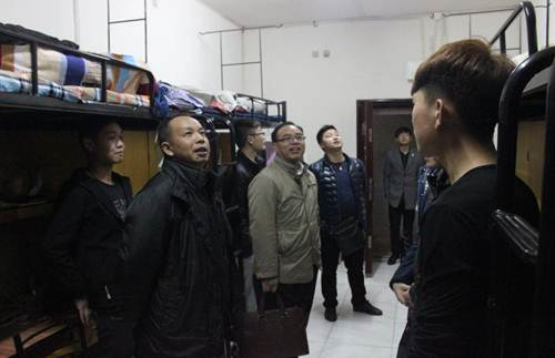 典礼结束后,公司领导带领学工办、班主任老师到员工宿舍进行安全、卫生检查、做好新学期开学各项准备。