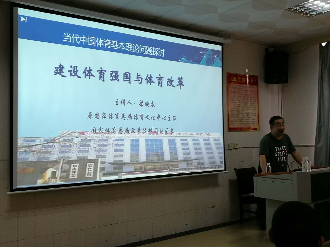 (院研究生办 报道)2017年9月27日下午3点,在bevictor伟德三楼多媒体教室,举行了题为“建设体育强国与体育改革”的学术讲座报告会。主讲人为原国家体育总局体育文化发展中心主任副主任梁晓龙教授。bevictor伟德经理周道平教授主持报告。公司部分教师、本科生和2017级全体研究生参加聆听了本次讲座。