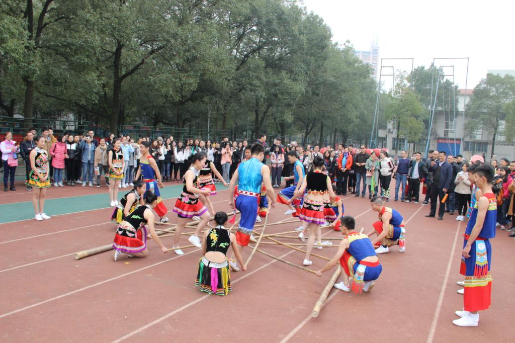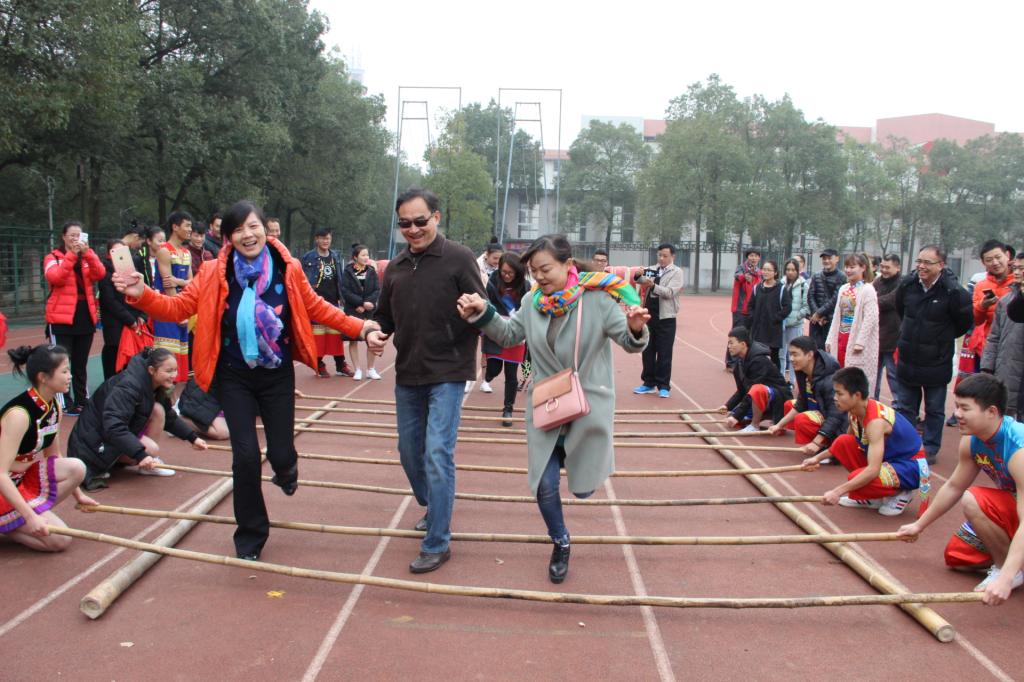 12月5日上午10点,中山市民宗局黎文杰副局长一行10人来公司对民族传统体育项目进校园进行交流与考察。公司原经理刘少英、党委书记肖松、副书记吴永海、龙佩林教授等老师陪同考察了苗鼓、跳竹竿、民族健身操、八宝铜铃、舞龙、舞狮、秋千、武术、高脚马、板鞋竞速、蹴球、民族健身操等民族传统体育项目,并现场与指导老师、员工进行广泛的交流,切身体验跳竹竿、高脚马等项目。