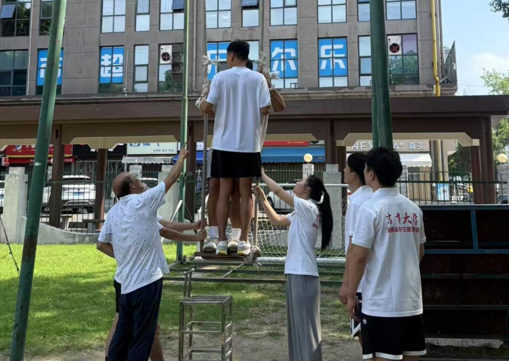 课程中,龙佩林教授从历史渊源、技术要领到实践应用,对秋千运动进行了系统讲解。强调了腰腹核心发力与呼吸节奏配合实现平稳摆荡。在教学环节,学员们两人一组实践“蹬摆同步”“重心调控”等技术要点,在专业指导下深入体会传统体育的力学智慧。