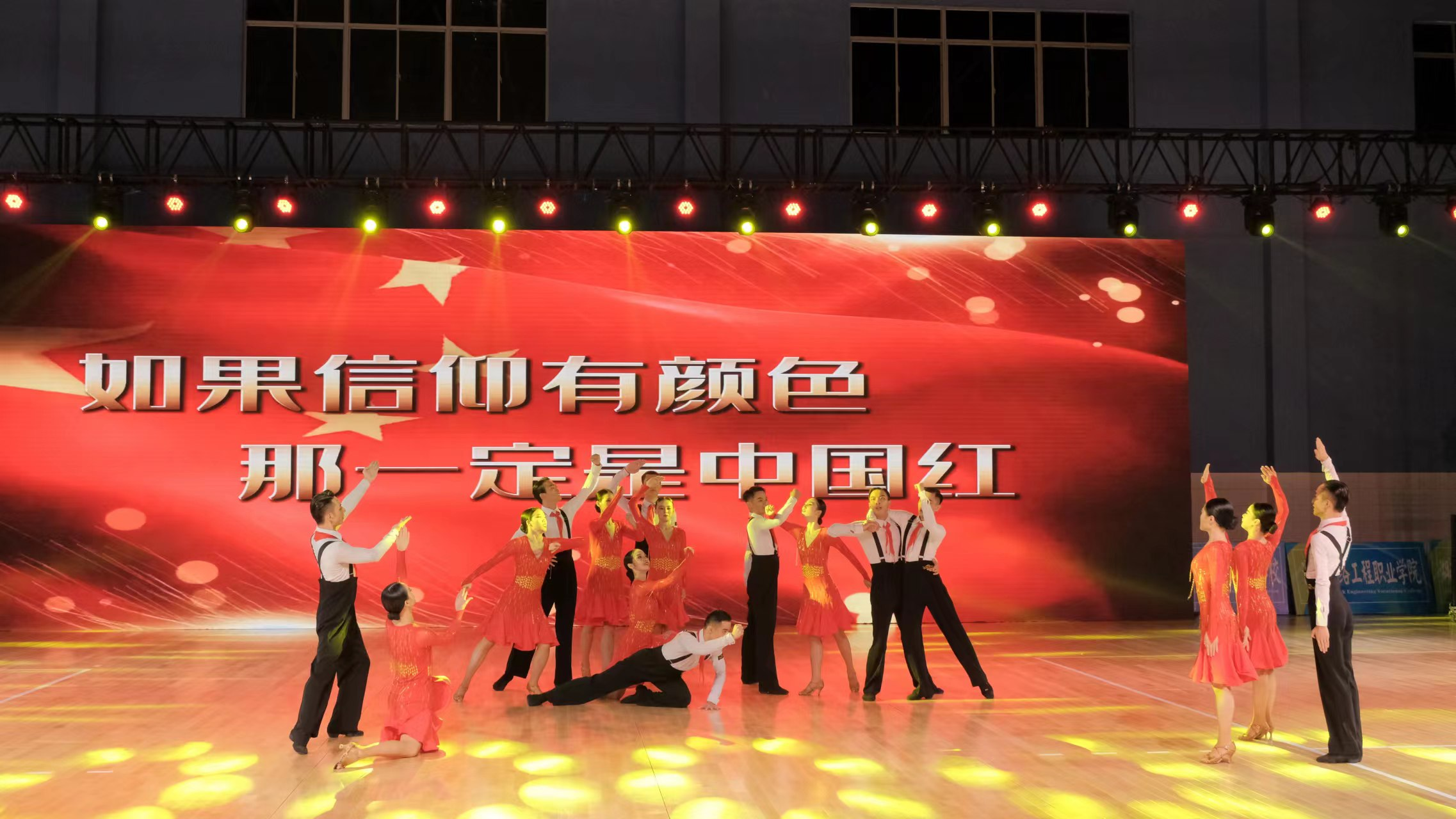 (图为公司运动员艺术展演团体舞比赛实时照片)