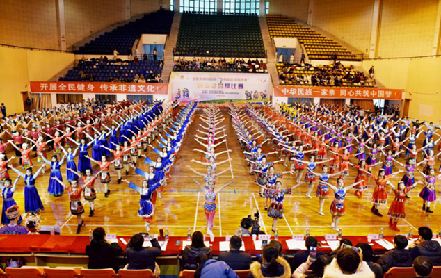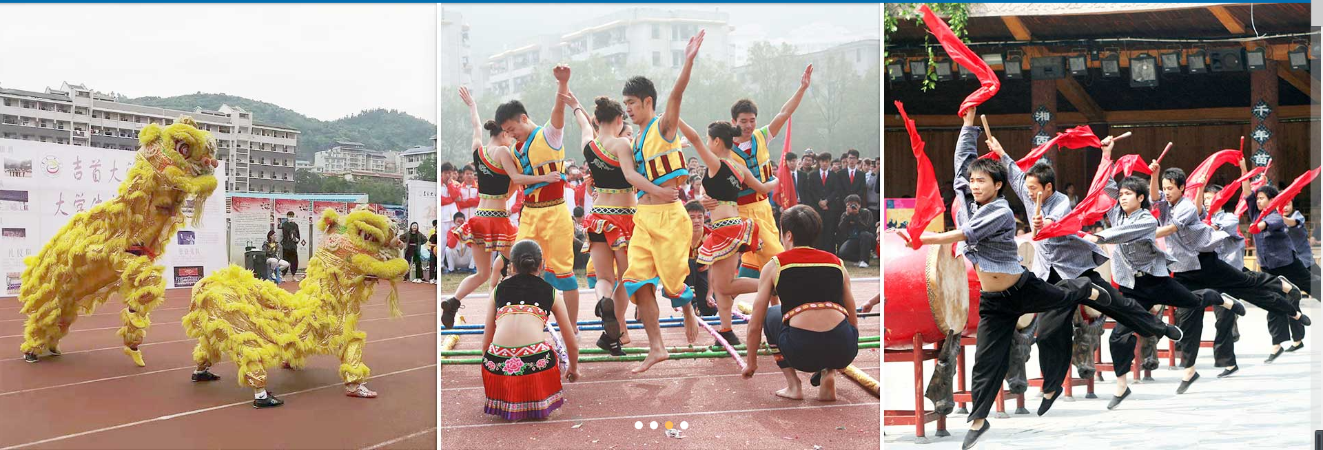 民族传统体育项目舞狮、跳竹竿、苗鼓表演