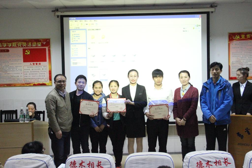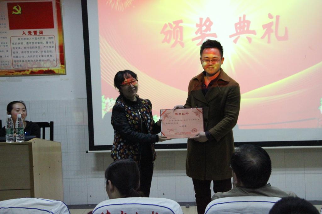 最后,张小林老师宣布比赛成绩,出席领导为获奖选手进行颁奖,合影留念。